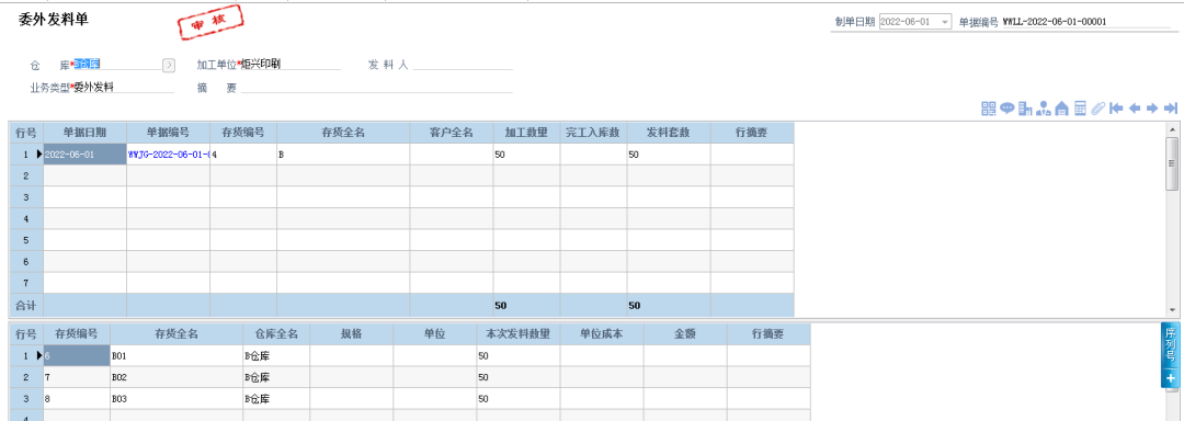 通過管家婆工貿ERP的委外加工管理,炬興印刷可以做委外加工任務單,當發料時,先在對應委外任務單進行發料;當委外回來之后,選擇對應委外任務單生成委外完工驗收單,一個委外任務單貫穿整個委外任務。同時,通過委外材料分布表也可看出有多少材料還在外面,分別在哪個委外商那里。