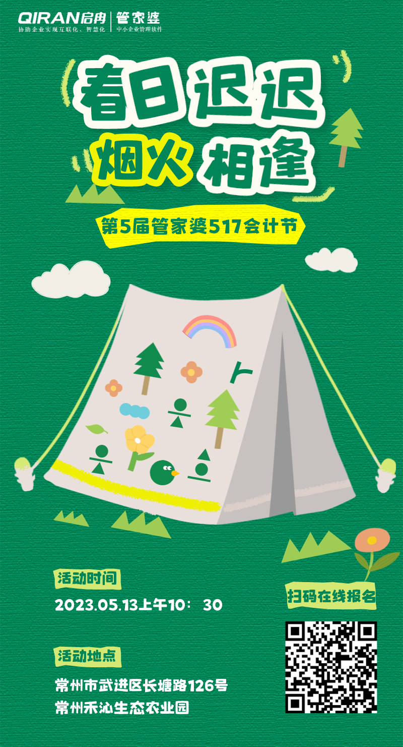 管家婆517會(huì)計(jì)節(jié)自2019年創(chuàng)辦至今,已經(jīng)成功舉辦過(guò)4屆,今年,啟冉軟件攜手管家婆為致敬會(huì)計(jì)人員,將開(kāi)展“春日遲遲 煙火相逢——第5屆管家婆517會(huì)計(jì)節(jié)”戶外活動(dòng),誠(chéng)邀財(cái)會(huì)人員一起來(lái)燒烤,赴一場(chǎng)有煙火氣息的會(huì)計(jì)節(jié),樂(lè)享工作,暢享生活。
